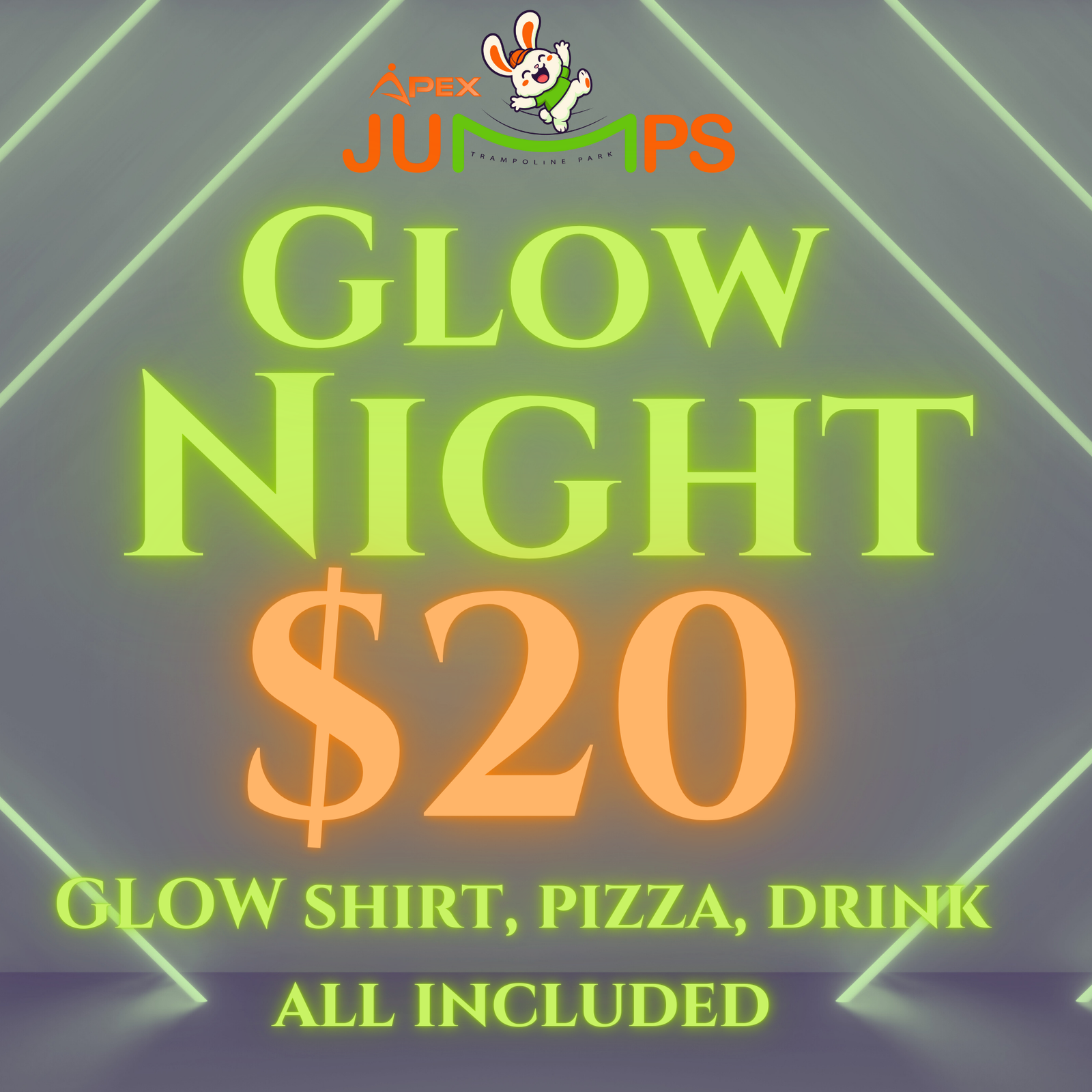 Neon Night $20 with Pizza, Drink, Shirt included