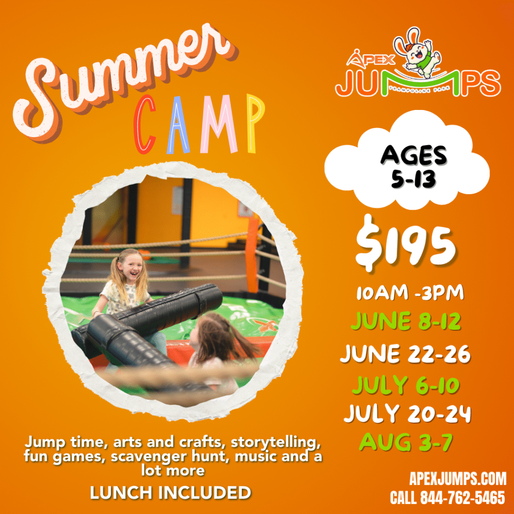 JOIN THE ULTIMATE SUMMER ADVENTURE! ☀️ Get ready for a week of high-flying fun at Apex Jumps! Our Summer Camp is the perfect way for kids to stay active, meet new friends, and build skills through jump time and creative play.